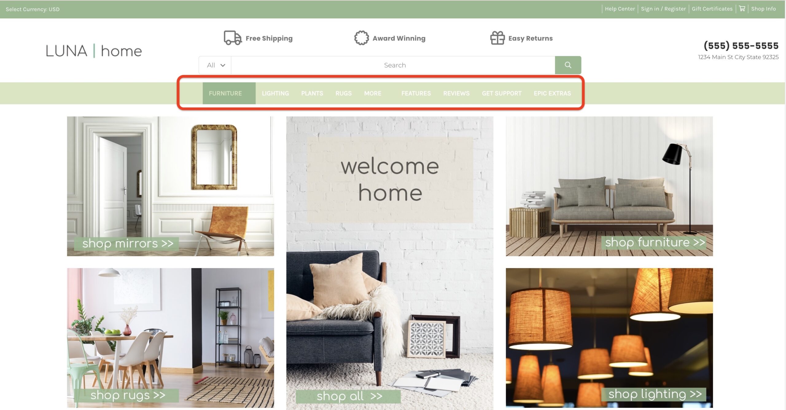 - Match the product category name exactly (including caps, spaces, etc), and input the image URL as well as the link where you’d like the image to lead. This is available for both the right side, as well as the bottom of the menu.