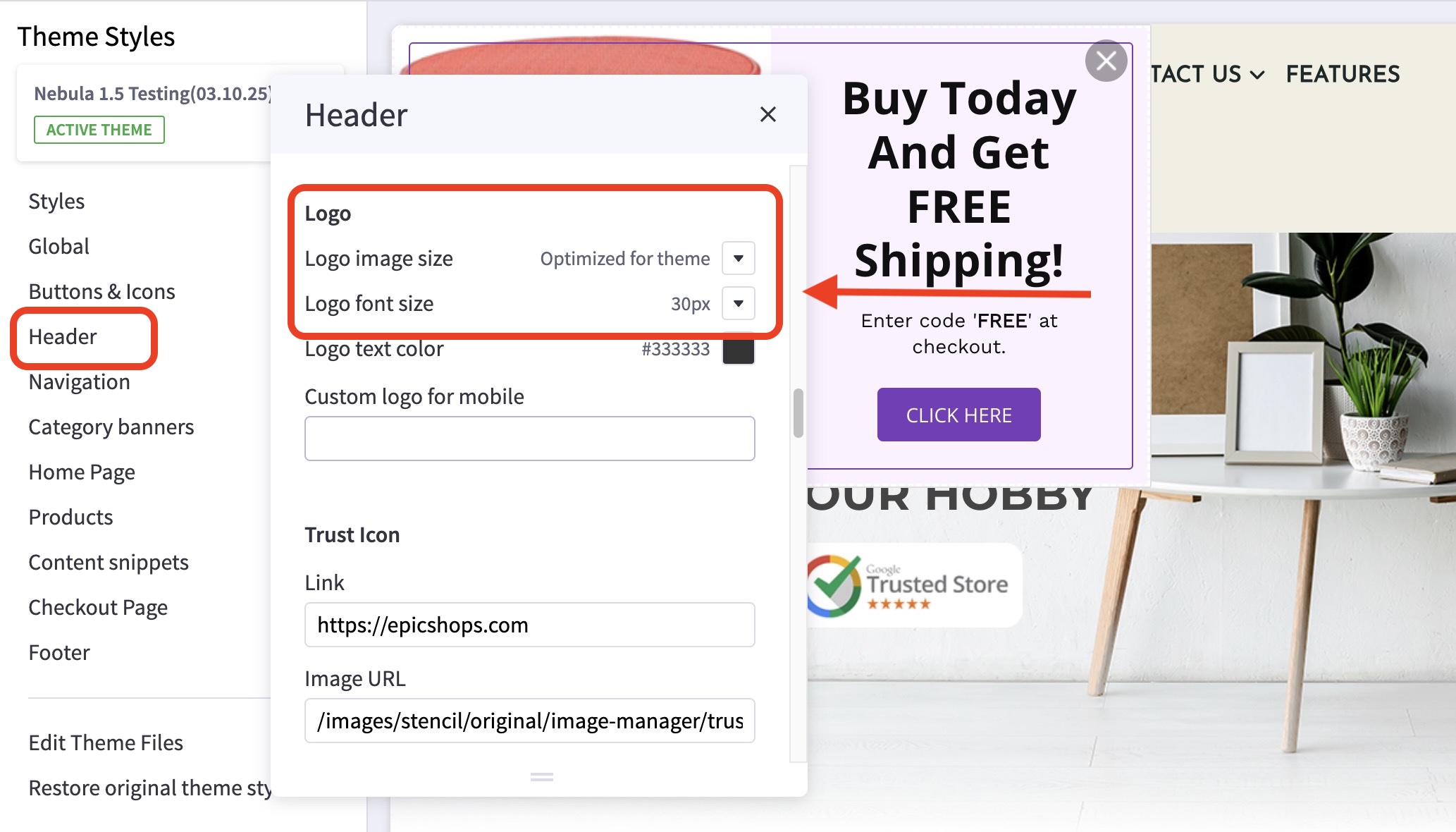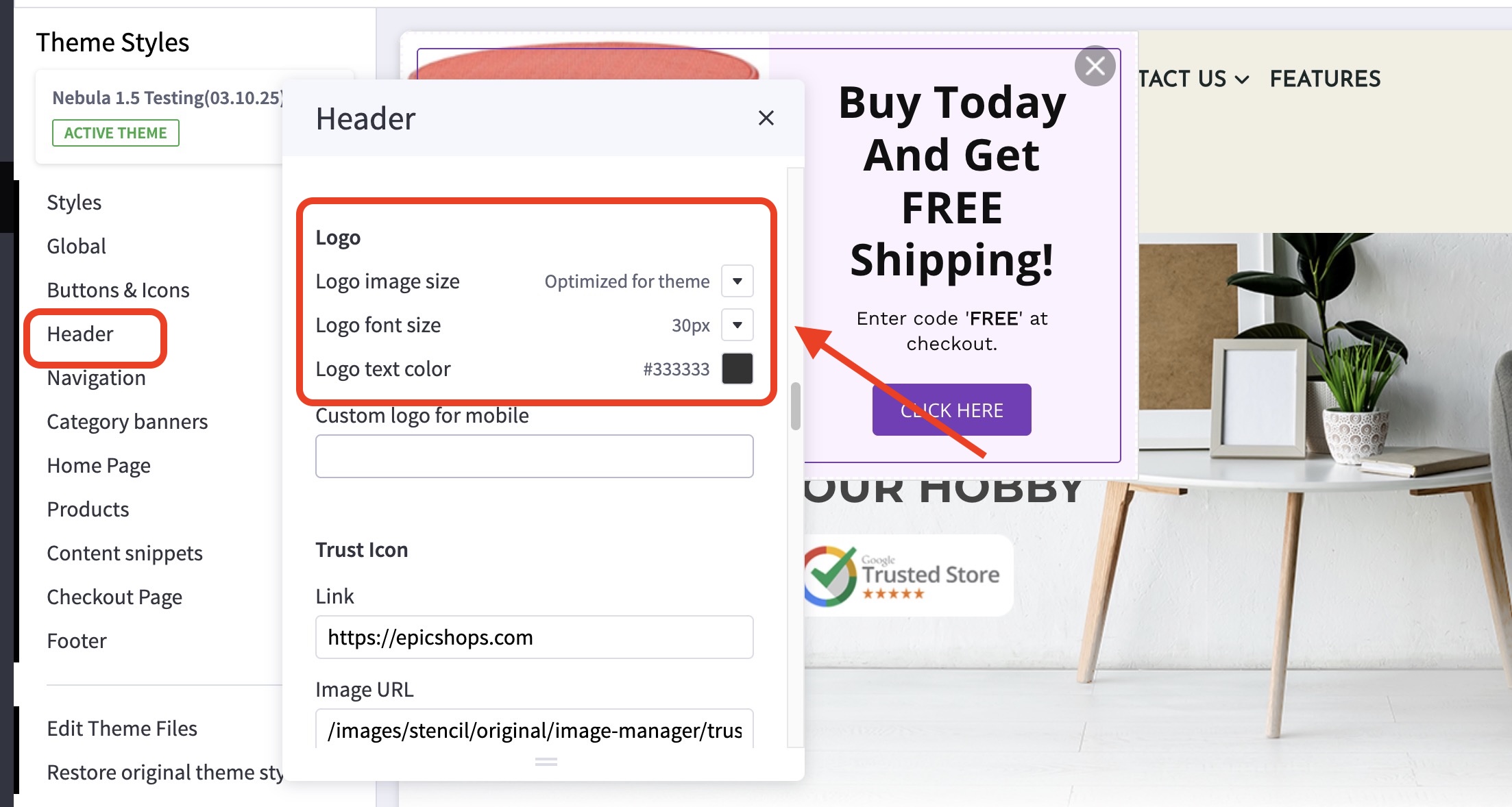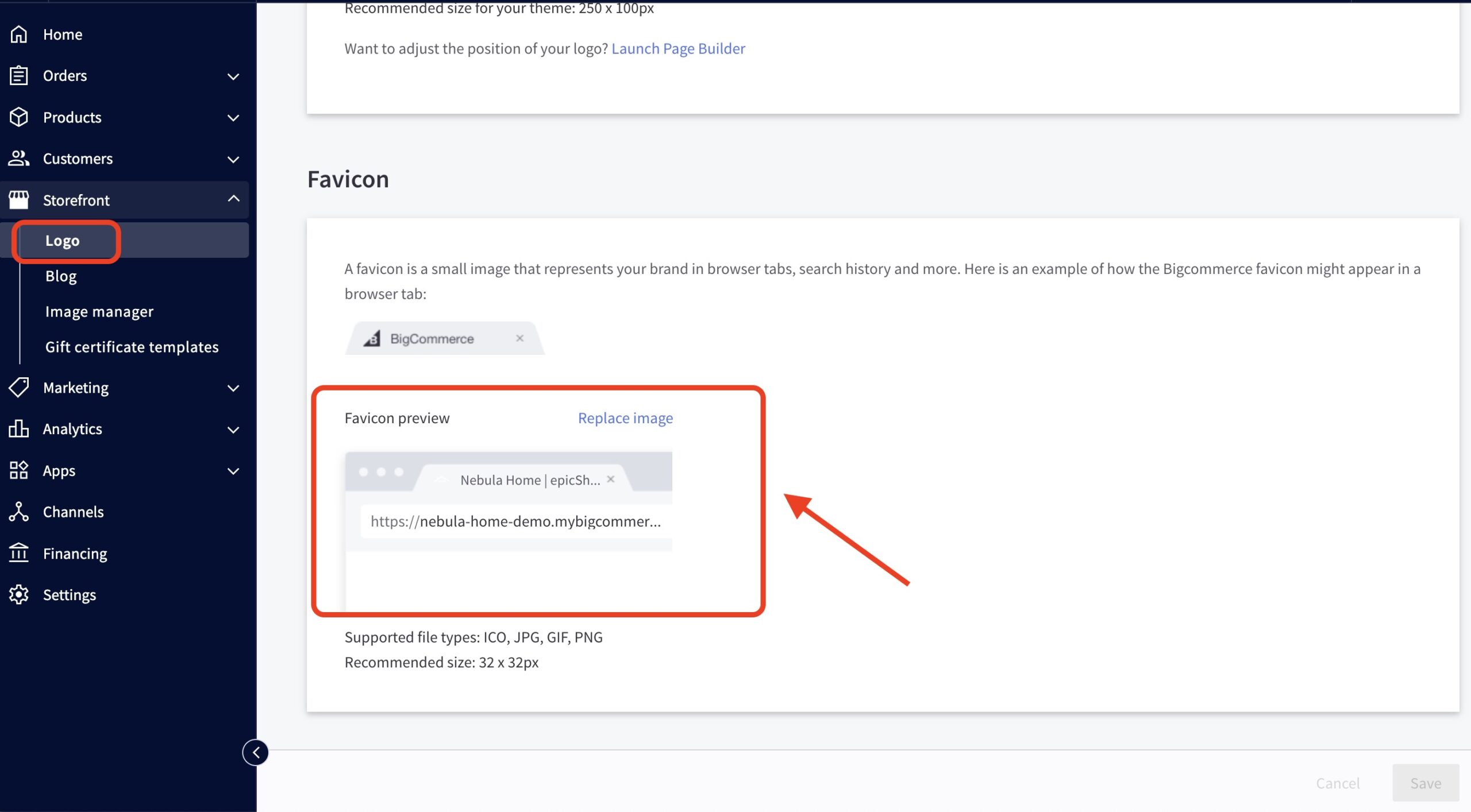 - From the BigCommerce dashboard, go to Storefront > Logo