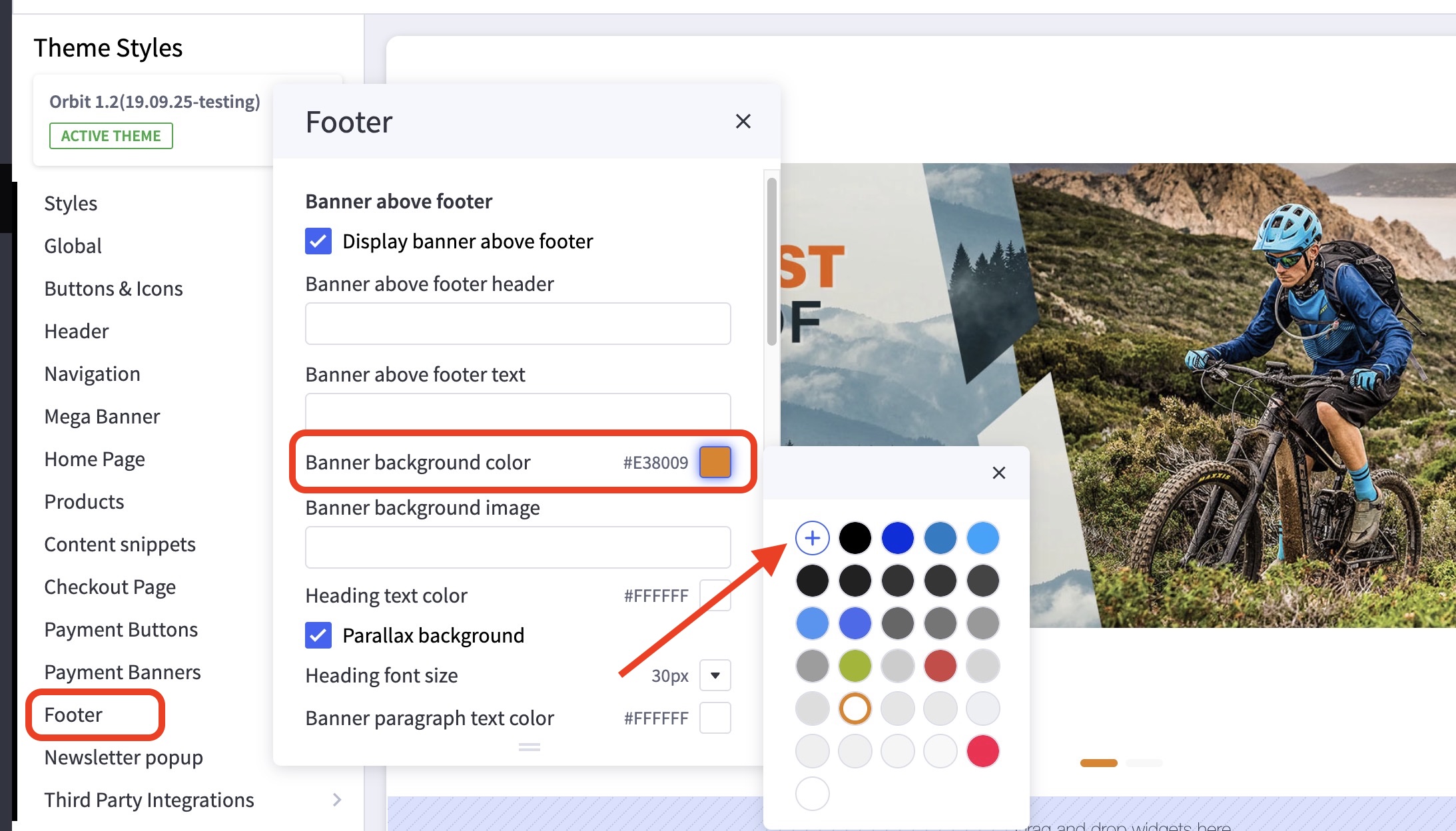 • In the first Banner above footer subsection, click the color icon labelled
