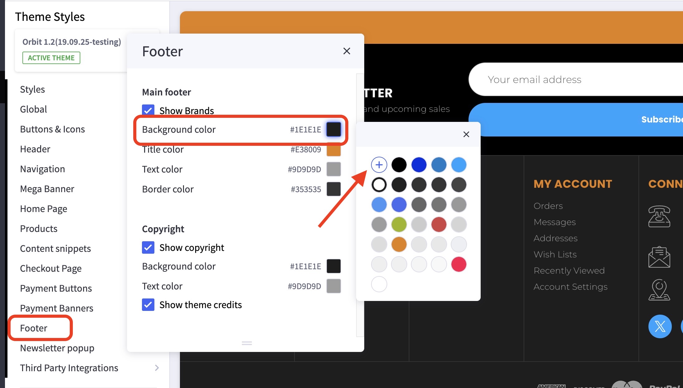 - In the Main footer subsection, click the color icon to pull up the picker.