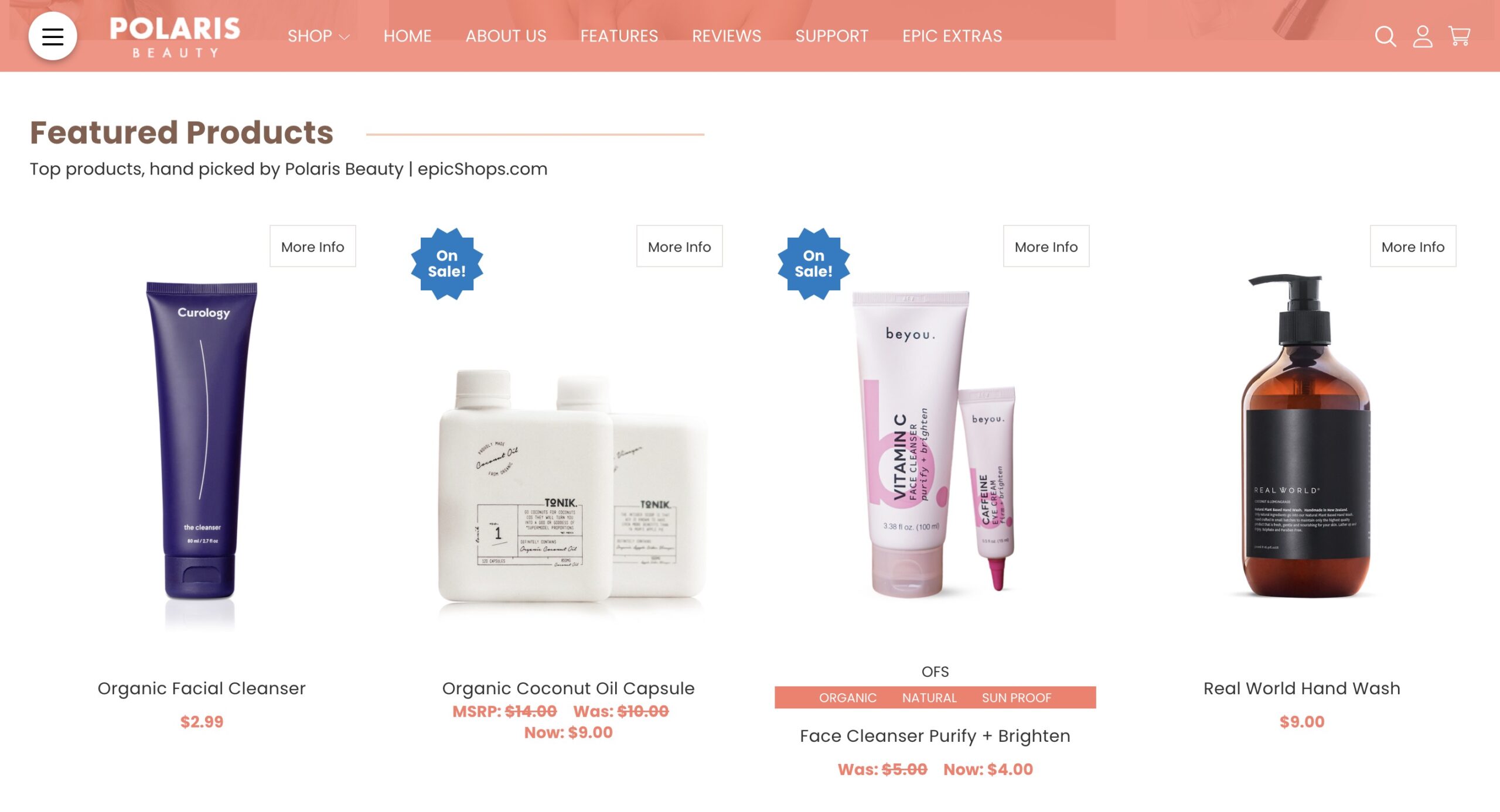Section of products displayed on the front page