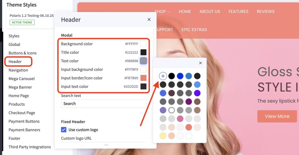 - You can click the (+) button to type in a Hex code or to use the slider.