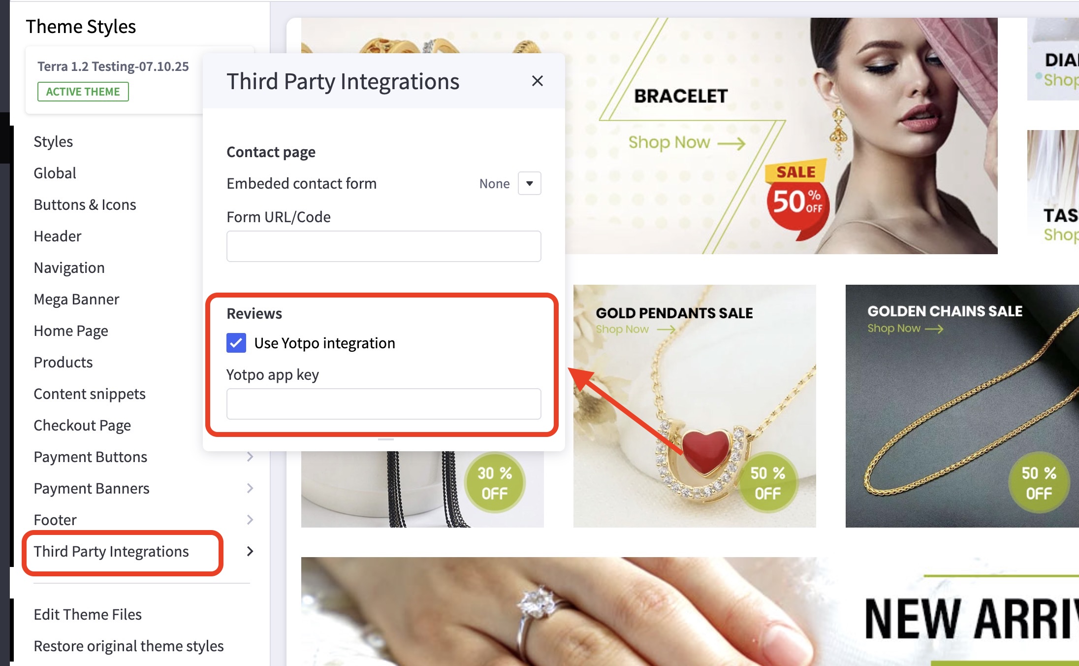- Input your Yotpo integration key in the field.