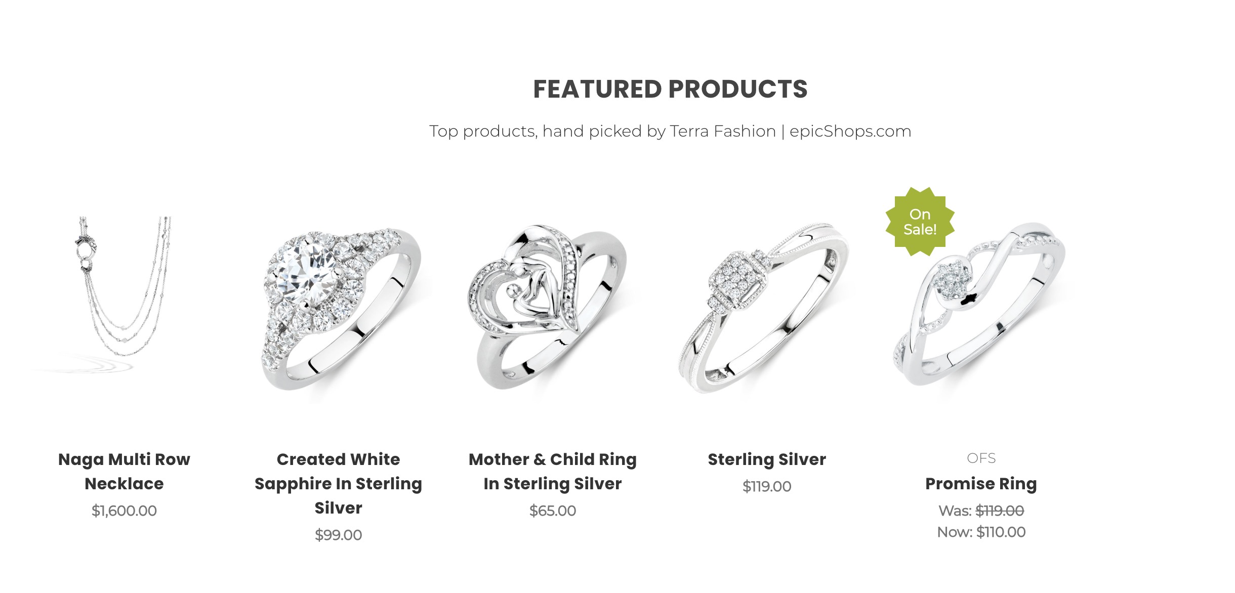 Section of products displayed on the front page