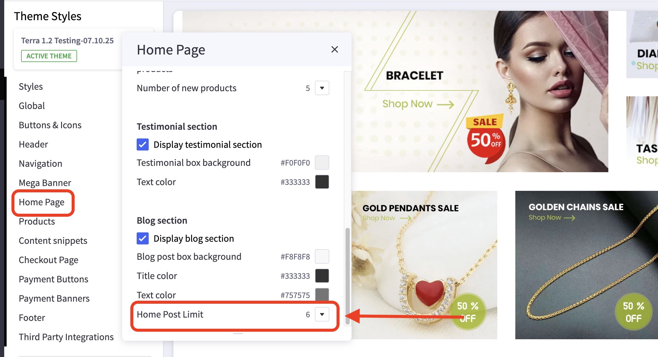 How can I change the number of blog posts displayed on the home page? #