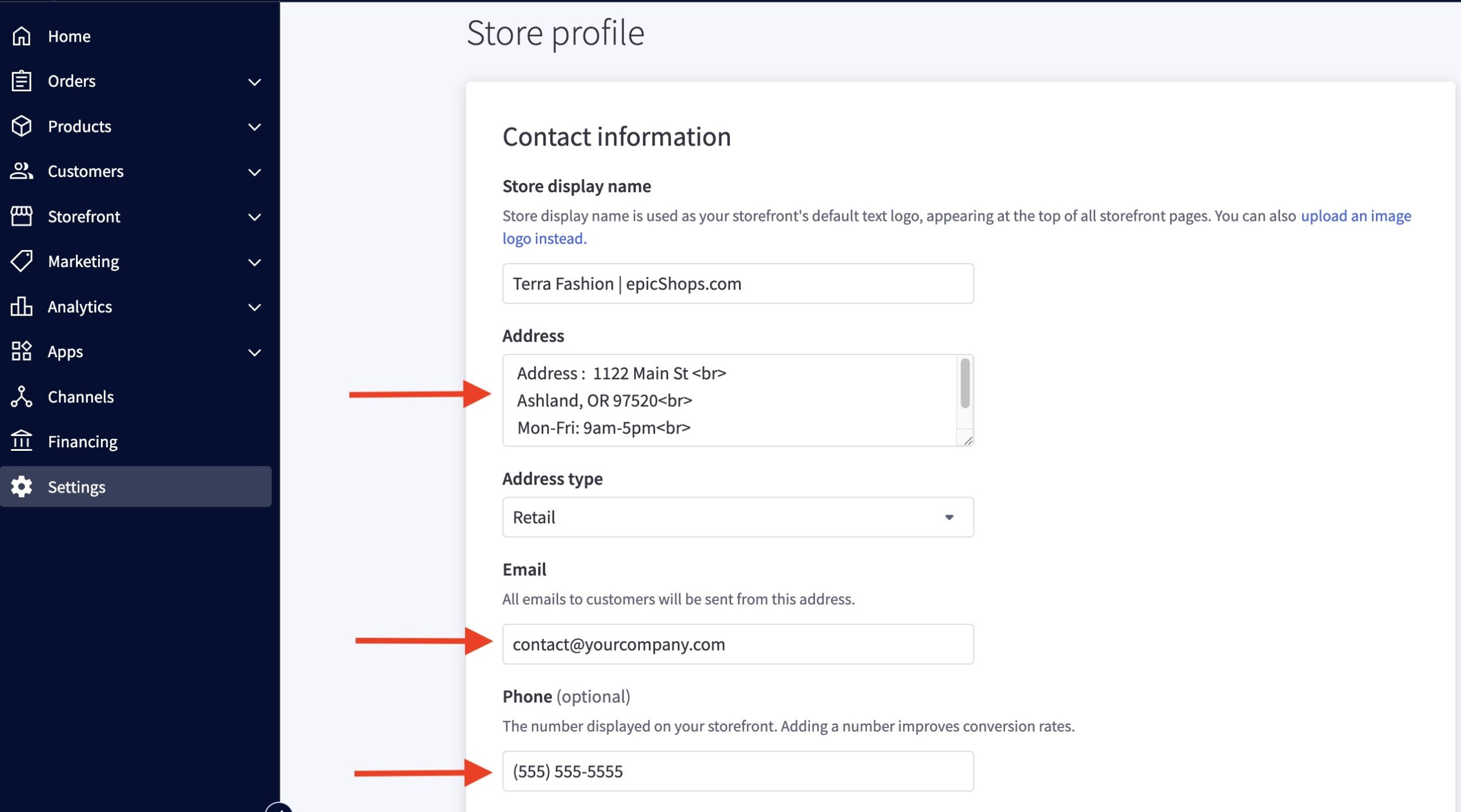 - In the BigCommerce dashboard, go to Settings > Store Setup > Store Profile.
