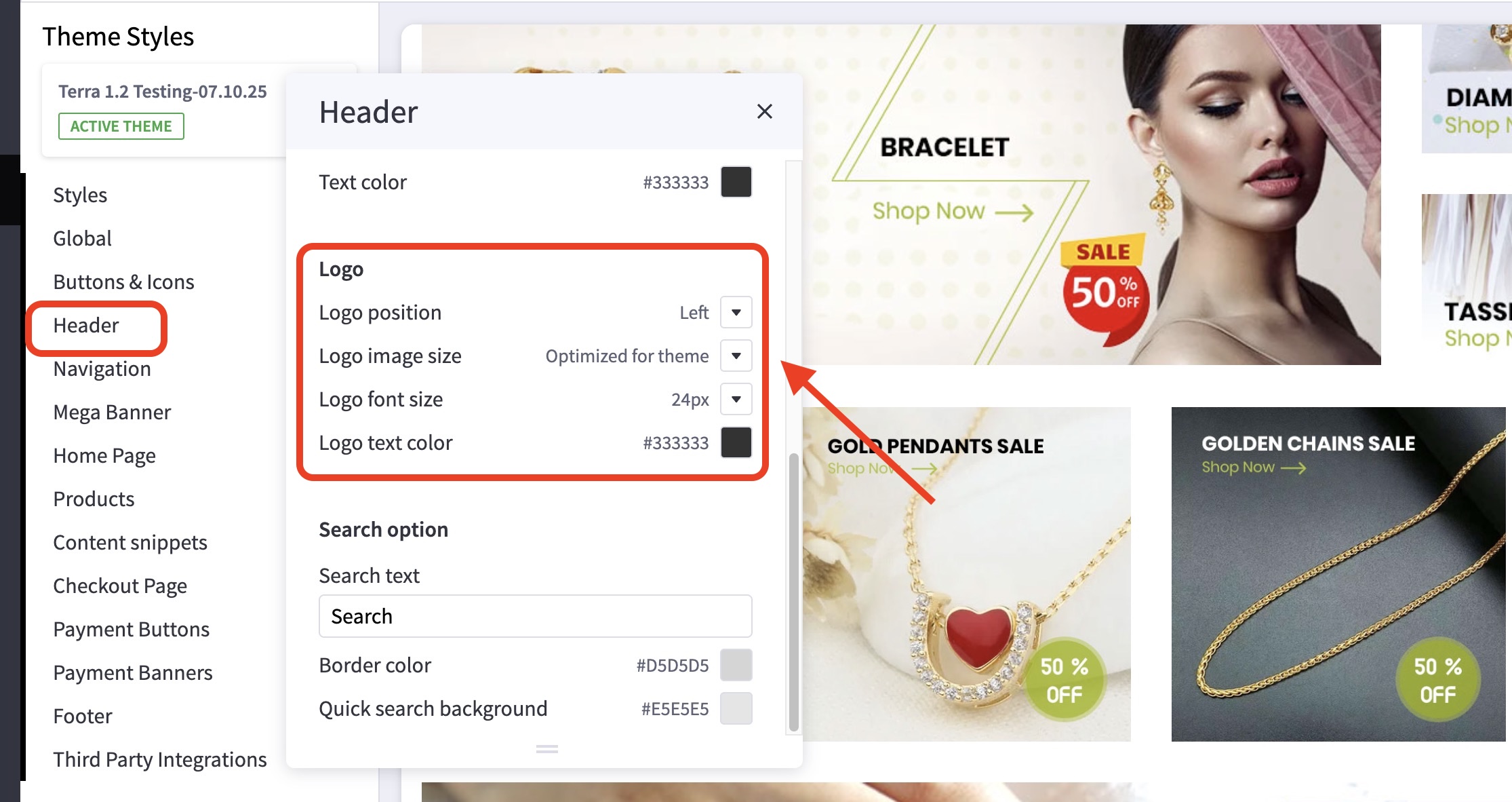 - Scroll down to the Logo subsection to adjust your logo display settings.