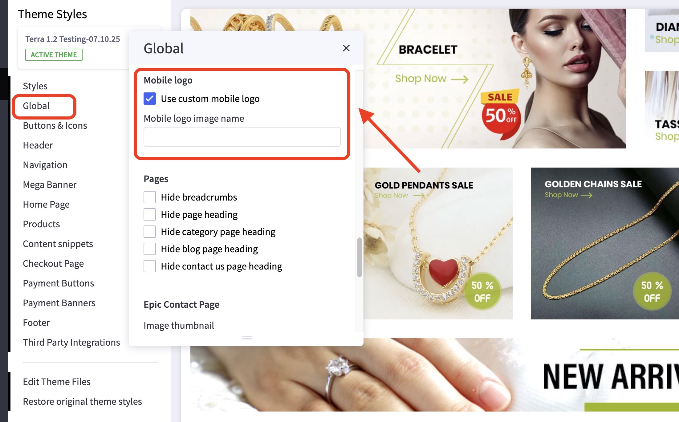 - Scroll down to the Mobile Logo subsection and check Use custom mobile logo.